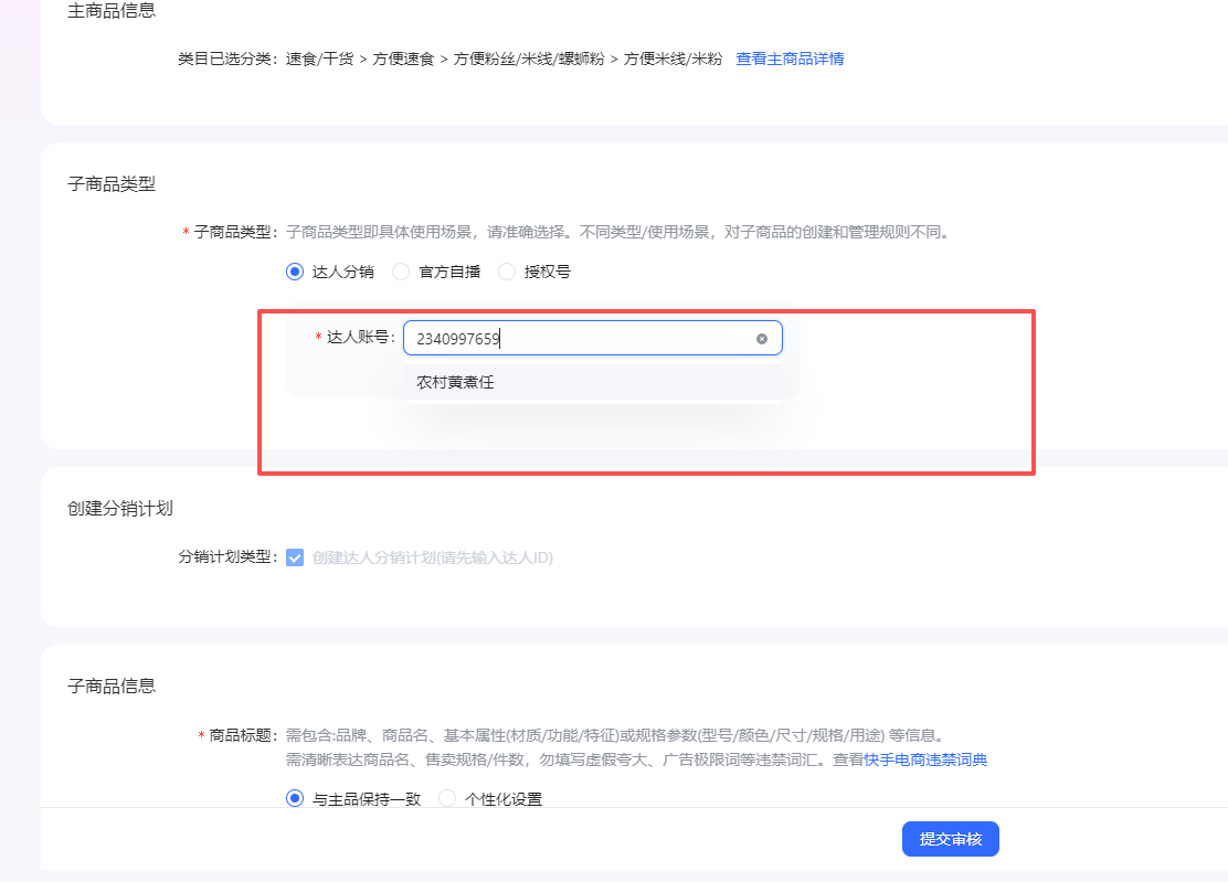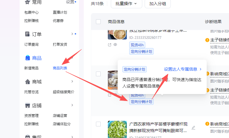 3.商品列表——找到对应商品——定向分销计划——设置达人专属信息