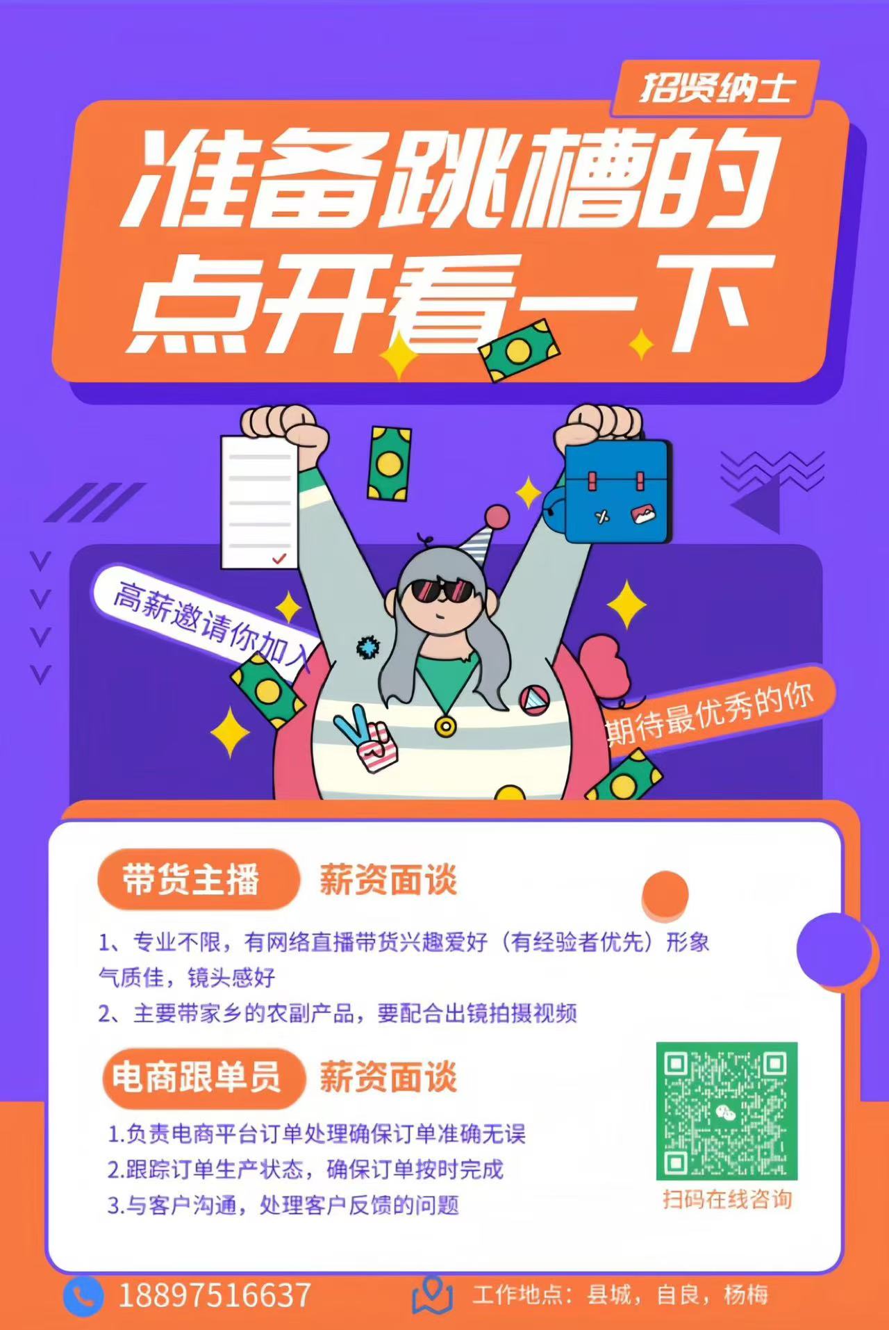 诚招电商跟单员一名女性,懂电脑,有相关工作经验优先工作时间12:30-21:30发走快递可提前下班月休2天基本工资2500+全勤奖100+晚餐补贴300+绩效奖金(计件拿提成)工作地点:容州镇真武阁路76号家月商行(贵妃食府对面)