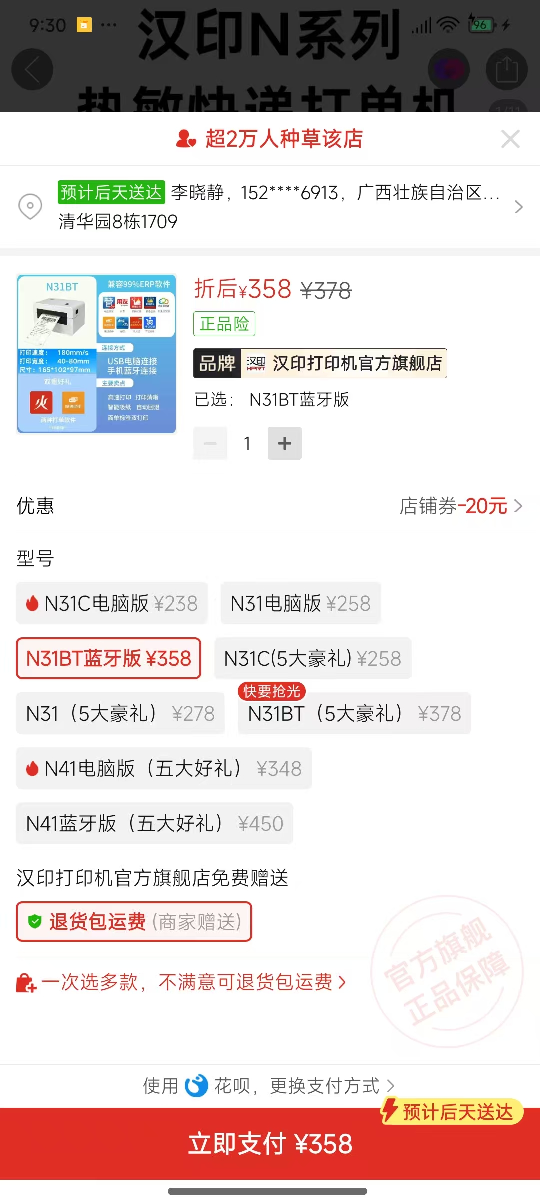 购买说明:需要手机打单+电脑打单就选N31BT;只需要电脑打单就选电脑版。推荐买蓝牙版